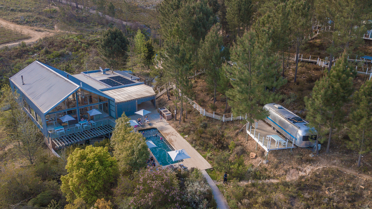 Situated along the pine-whispering slopes of the magical Elgin valley, Old Mac Daddy is a luxury trailer park boasting quirky and individually themed Airstream trailer suites.